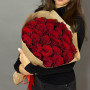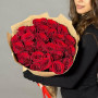На фото букет из 25 бордовых роз. В составе: роза 25 шт, дизайнерская упаковка 1 шт, атласная лента 2 шт, . Все цветы свежие и ароматные, букет красиво оформлен и отлично подходит для подарка. Доступна доставка цветов или самовывоз.
